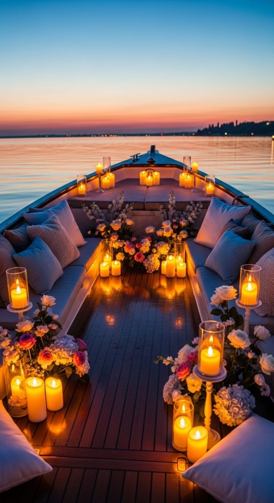 If accessible, book a private boat ride or small candlelight cruise. Decorate the space with LED candles, soft pillows, and flowers. Watching the sunset or the evening lights reflect on water while surrounded by candlelight creates a luxurious and unforgettable birthday experience.