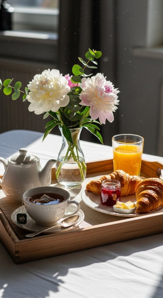 Start your partner’s birthday with a cozy breakfast in bed. Prepare their favorite morning treats, add a hot beverage, and include a small bouquet or a personal note.