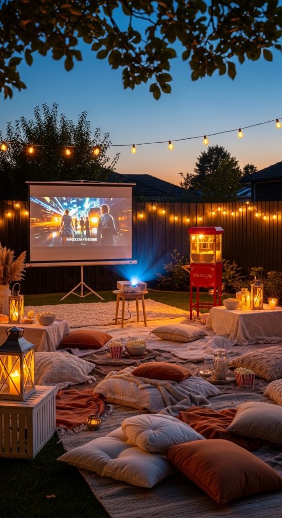 Set up an outdoor projector in your backyard or terrace for a private movie night. Include blankets, fairy lights, popcorn, and your partner’s favorite snacks. Choose a romantic or favorite movie that holds significance in your relationship.
