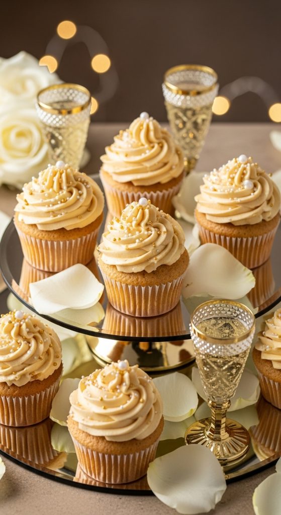 Bring glamour to your bridal shower with cupcakes featuring edible gold leaf or glitter accents. Pair them with soft white or pastel frosting for a luxurious finish. These sparkling cupcakes look sophisticated and are perfect for an upscale, modern bridal shower theme.