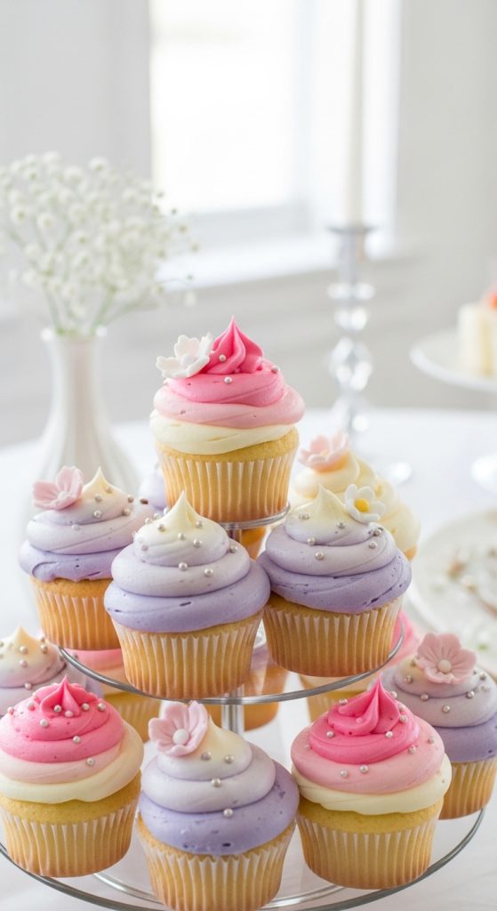 Ombre frosting cupcakes transition from light to dark shades of a single color, such as blush pink or lavender. They add a visually striking effect that looks elegant in photographs. Use smooth buttercream and a piping bag to achieve a seamless gradient for a polished presentation.