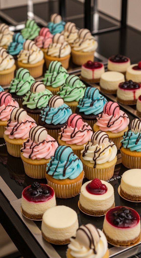 Combine your dessert table favorites by turning them into cupcake toppings. Mini cheesecakes, macarons, or chocolate drizzles can adorn cupcakes to create a multi-layered, indulgent treat. This idea works well for sweet-tooth-friendly showers.