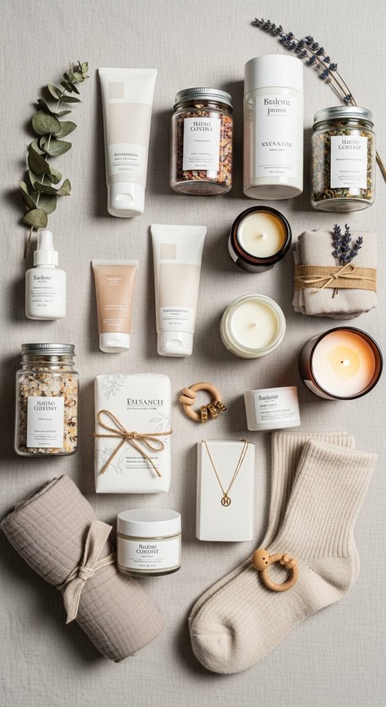 Many guests focus on baby gifts, but postpartum recovery essentials are incredibly thoughtful. Include items like nursing pads, soothing balms, comfortable robes, and recovery care products.