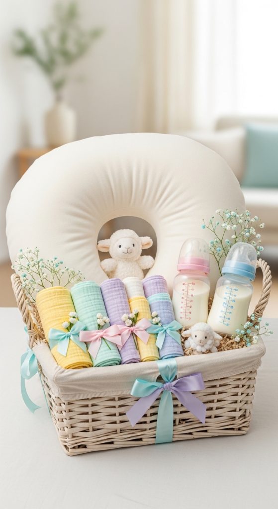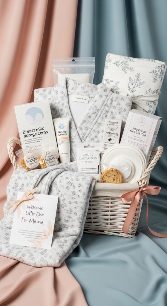 Include nursing pillows, burp cloths, bottles, and storage bags. This thoughtful gift supports her feeding journey and reduces early parenting stress.