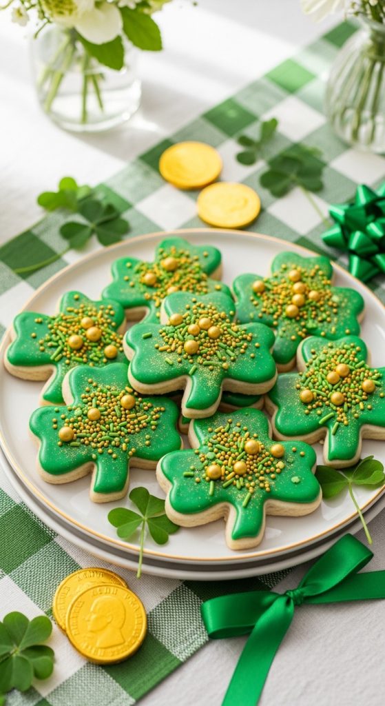 Shamrock-shaped sugar cookies are a must-have for St. Patrick’s Day celebrations. Soft, buttery cookies decorated with green royal icing instantly set the festive mood.