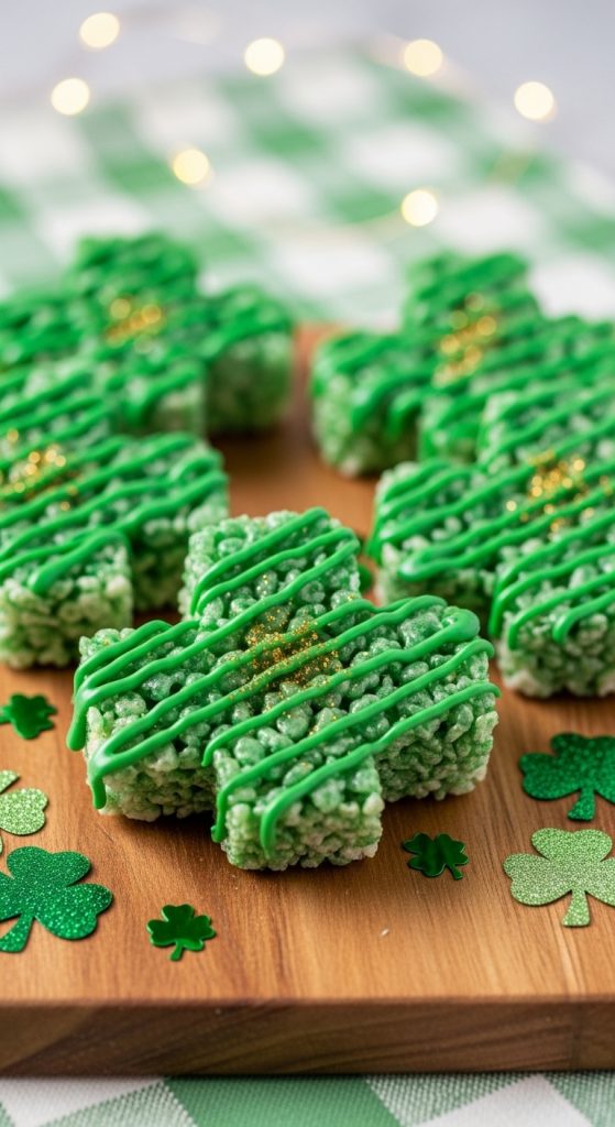 Transform traditional Rice Krispie treats into festive shapes using shamrock cookie cutters. Add green food coloring to the marshmallow mixture for a themed touch.