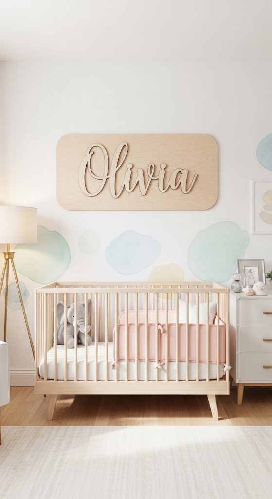 These custom name plaques can be hung above the crib or placed on a nursery wall. They add warmth and personality to the baby’s room décor.