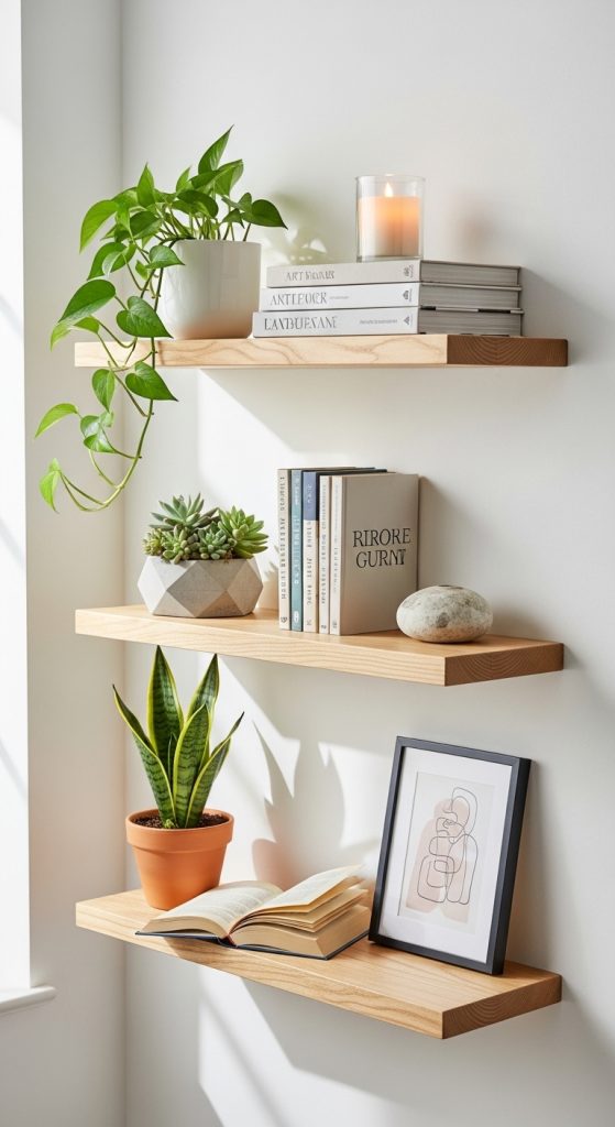 3. Floating Shelves with Curated Decor