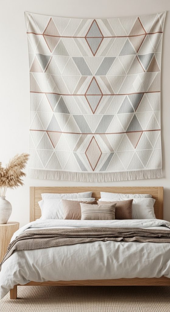 6. Neutral Wall Tapestry with Modern Pattern