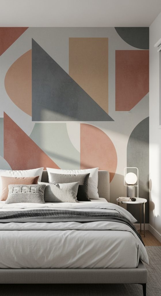 SEO Keywords: geometric wall decor ideas, modern wall mural design, aesthetic bedroom wall art