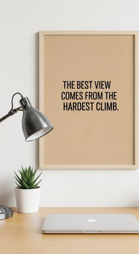 Popular quotes like “Stay Focused” or “Dream Big” work well for study environments. Print it on matte paper and frame it in a thin wooden or black frame for a polished look.