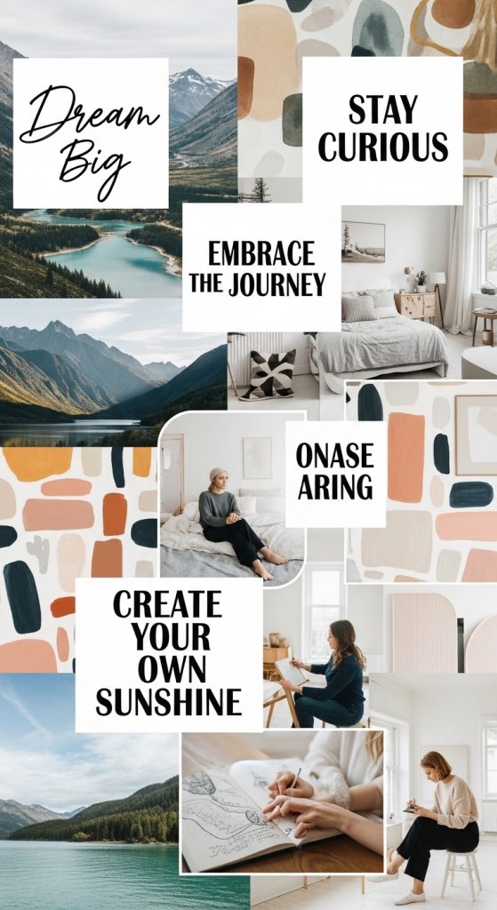 Create a collage-style poster featuring goals, inspirational images, affirmations, and career dreams. Use magazine cutouts or digital printables arranged creatively.