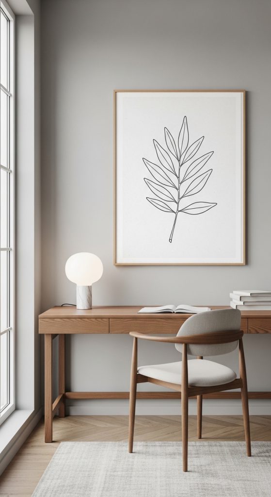SEO Keywords: botanical aesthetic wall art, minimalist leaf poster DIY, study room plant decor print