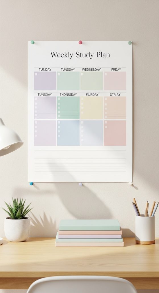 SEO Keywords: aesthetic study planner wall poster, DIY study schedule print, functional study room decor