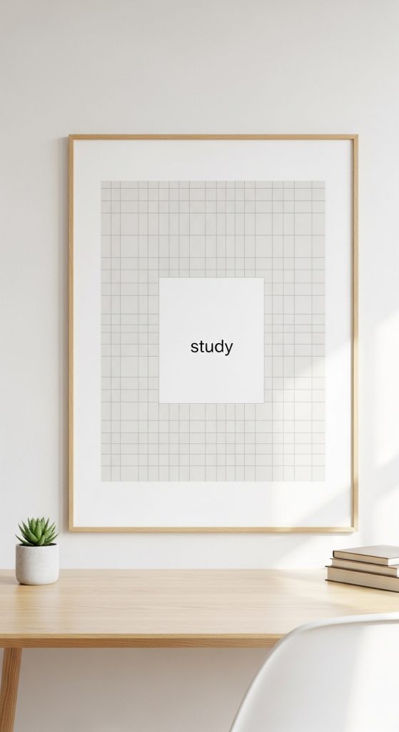 SEO Keywords: neutral aesthetic wall poster, grid pattern study room art, modern DIY wall decor