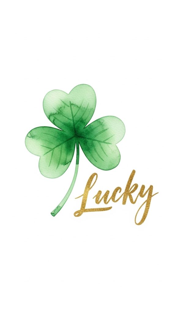 Pair a watercolor shamrock with hand-lettered typography such as “Lucky” or “Feeling Lucky.” Use brush lettering in gold or dark green ink.