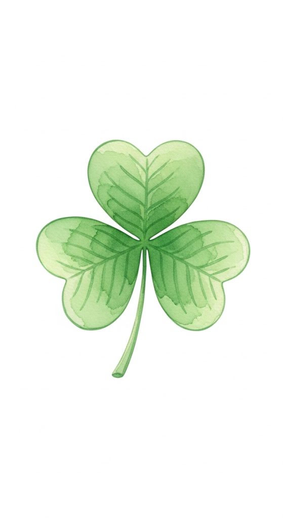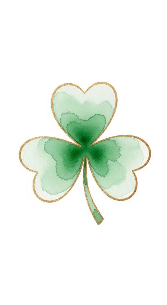 A simple three-leaf shamrock painted in soft watercolor shades of emerald and mint green is timeless. Add subtle texture variations to give it a natural, hand-painted look.