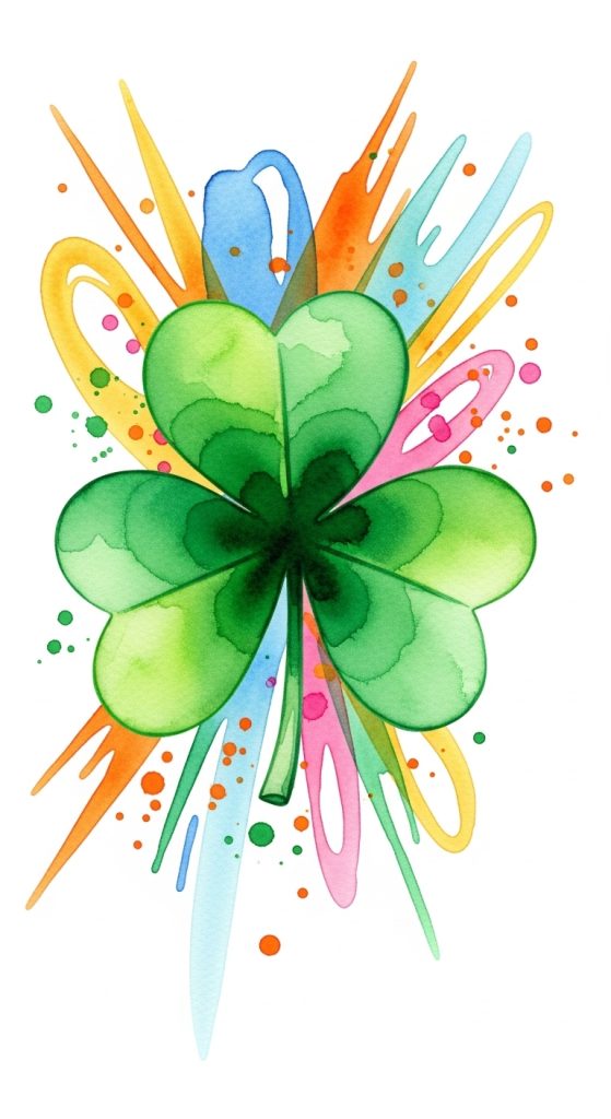 Design a shamrock centered on abstract watercolor splashes in different green shades. Let the background strokes remain soft and artistic.