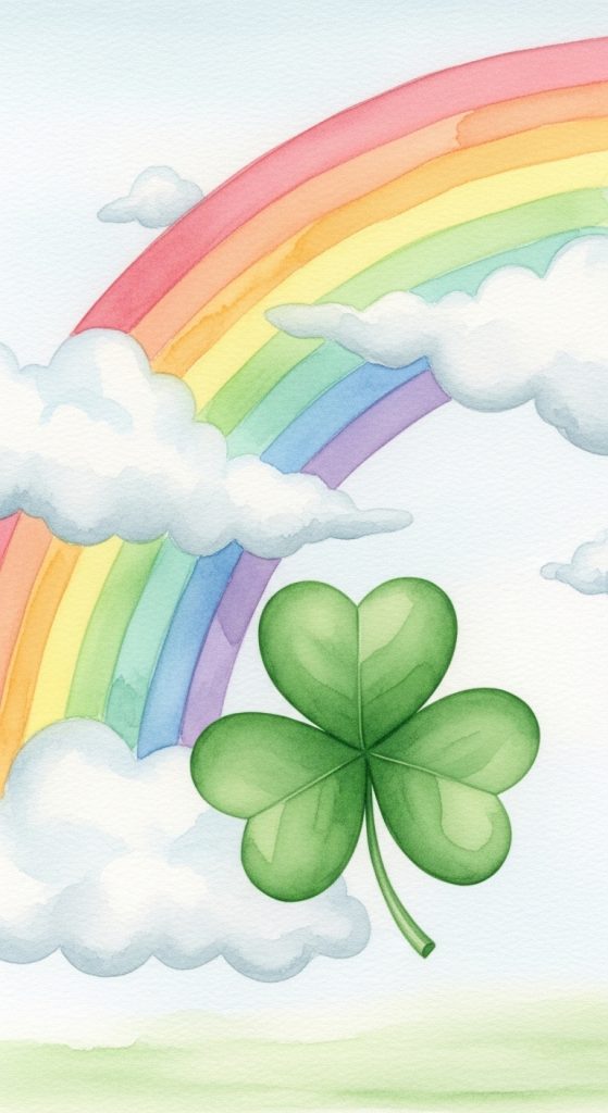 Combine a soft watercolor rainbow arching over a shamrock with subtle cloud details. Add gentle blending for a dreamy look.