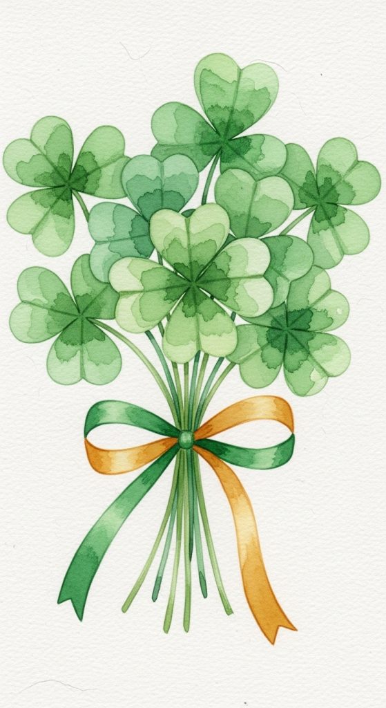 Arrange multiple shamrocks like a bouquet tied with a watercolor ribbon in gold or green.