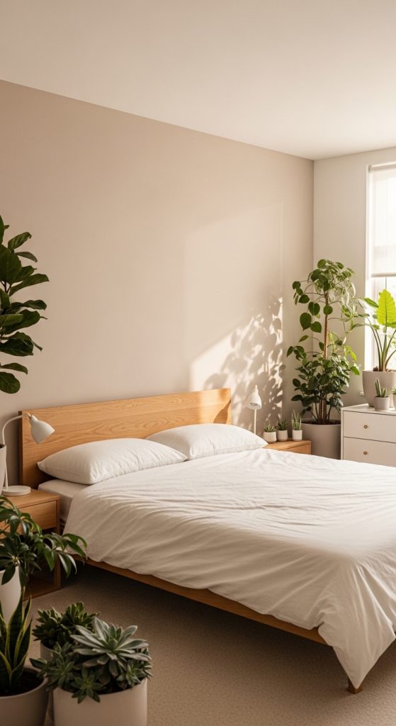 Pair a neutral wall with simple furniture, indoor plants, and textured décor elements. This look works beautifully in bedrooms and living rooms, especially if you love clean and clutter-free spaces.