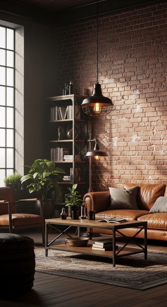 You can use real brick, brick wallpaper, or textured paint to achieve this aesthetic. Pair with metal décor elements for a cohesive industrial look.