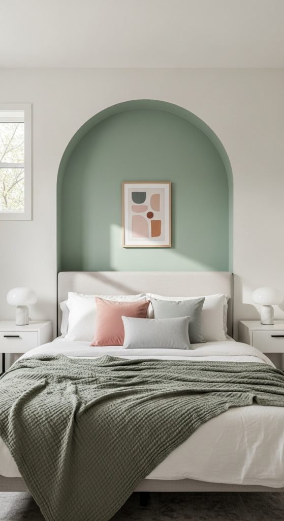 SEO Keywords: painted arch wall idea, aesthetic bedroom wall background.