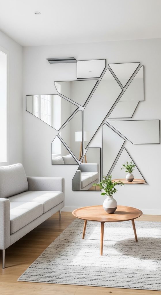 Full-height mirrors or geometric mirror tiles add a modern, luxurious touch. Pair with soft lighting for maximum impact.