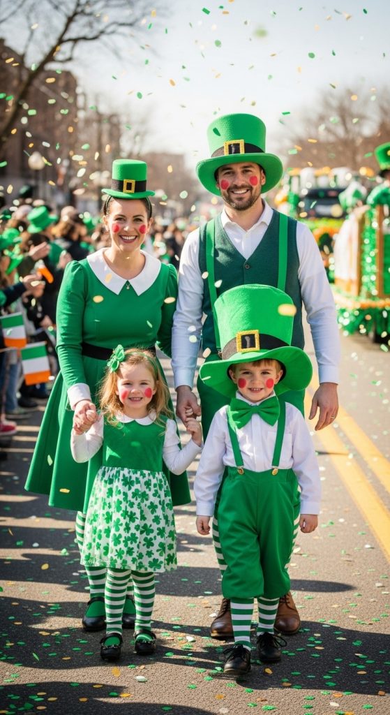 This idea is especially fun for parades inspired by Saint Patrick’s Day traditions. It creates a cheerful and memorable family look.