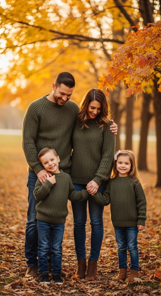 6. Green Sweaters for a Cozy Family Vibe