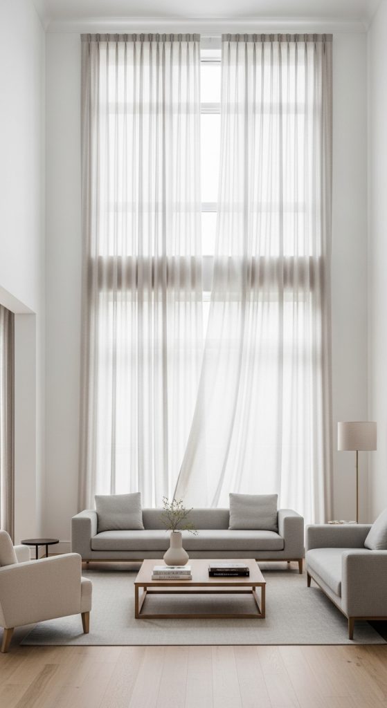 Avoid heavy drapes or dark curtains. Instead, choose light fabrics that allow sunlight to enter the space. Natural light enhances neutral tones and makes your living room feel fresh and inviting.