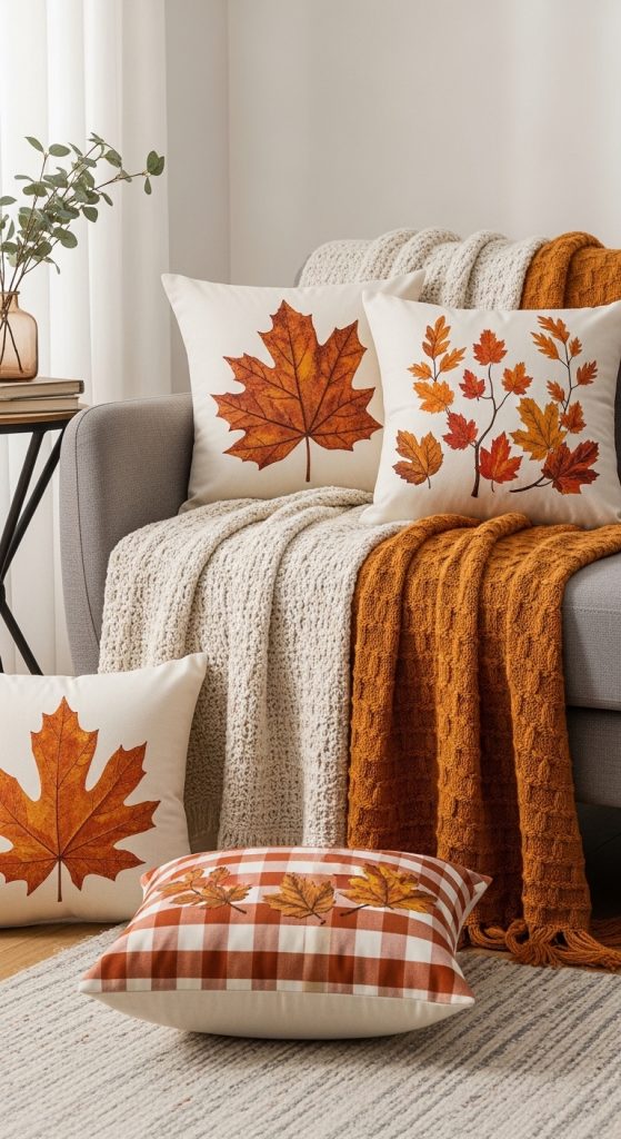 Swap out your standard throw pillows and blankets for seasonal options. Light pastel colors work well in spring, bright hues for summer, warm tones like rust and mustard for autumn, and cozy textures like velvet and knits for winter. This is an affordable way to instantly change the room’s mood.