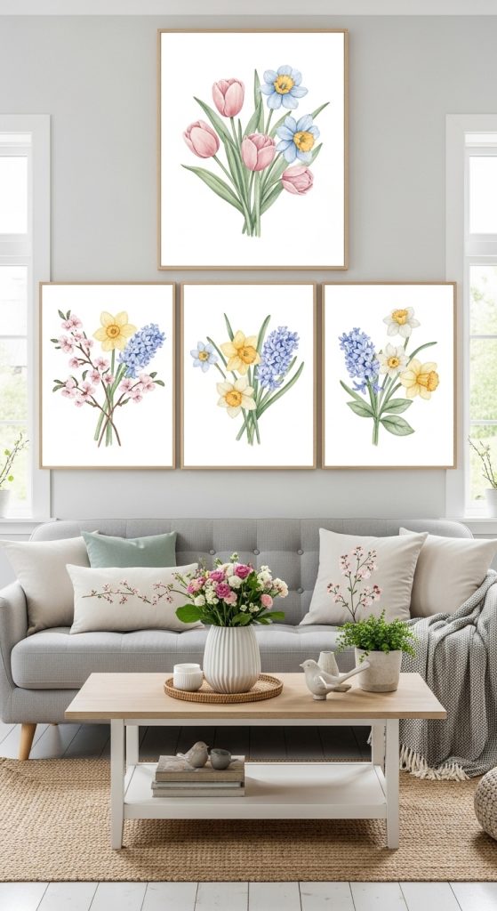 Update your walls with seasonal-themed artwork or framed prints. Floral prints, beach landscapes, autumn leaves, or snowy scenes can instantly reflect the time of year. Rotate art pieces throughout the year to keep the living room fresh and in tune with the seasons.