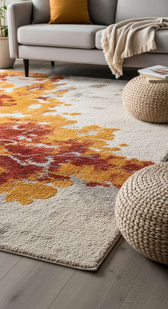 Adding a seasonal rug is a great way to tie the room together. Light-colored or floral rugs for spring, bright patterns for summer, warm earth tones for autumn, and plush textures for winter create a cozy and cohesive look. You can also add small floor accents like baskets filled with seasonal décor items.