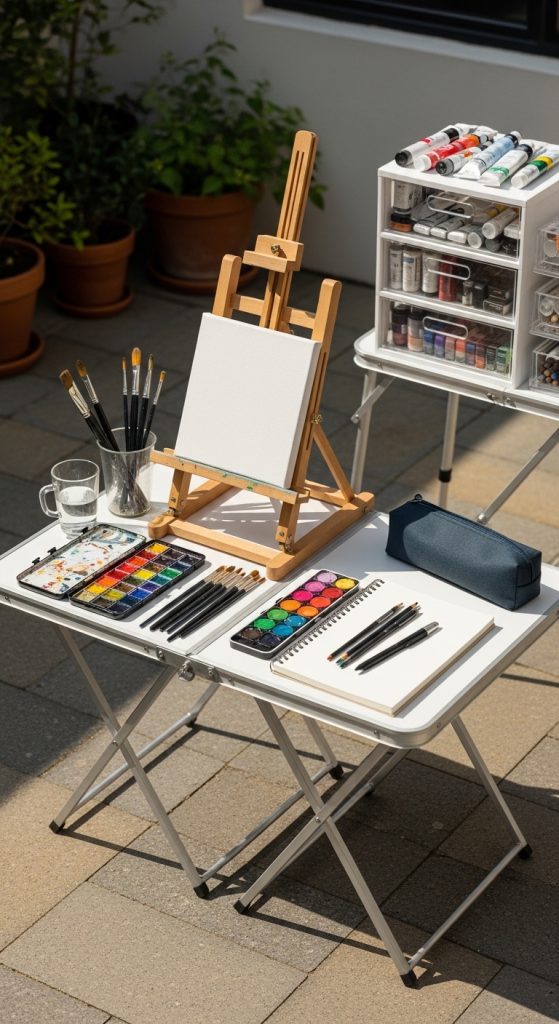 If space is limited, create a convertible studio using foldable tables, collapsible easels, or storage benches. This allows you to quickly set up or clear the area for other activities while keeping it functional for artistic work.