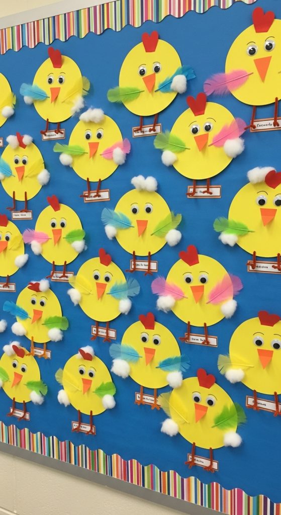 Once finished, display the chicks on a bulletin board with a fun title such as “Our Little Easter Chicks.” This display adds a playful and colorful touch to classroom decor.