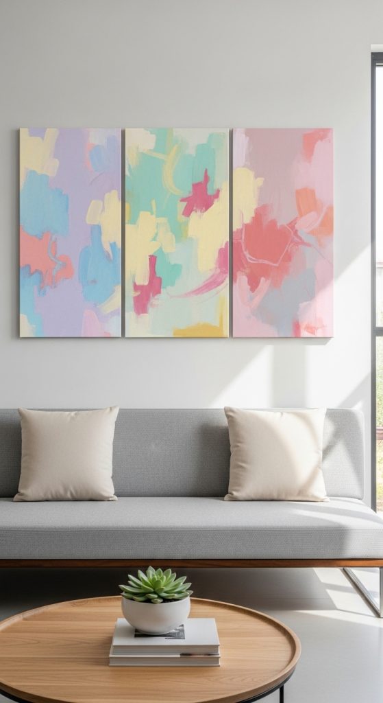 Abstract art adds a modern and sophisticated touch to any wall. Large canvas paintings with soft pastel colors or bold brush strokes can instantly become the focal point of a room. Abstract wall art works especially well in minimalist and contemporary interiors.