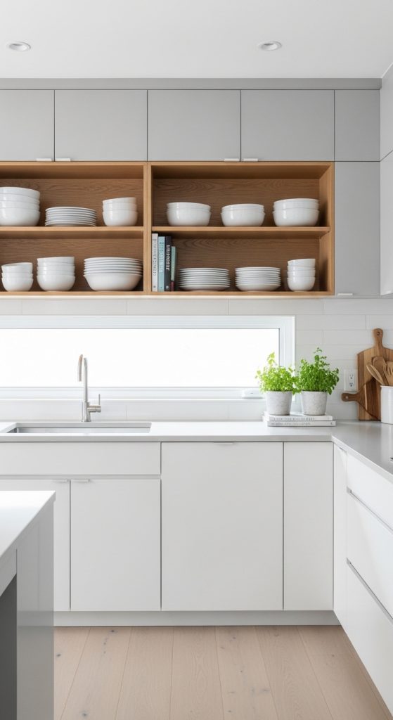 Combine open shelving with closed cabinets or drawers. This allows you to display decorative items on open shelves while keeping clutter hidden in cabinets. It’s a functional and stylish balance.