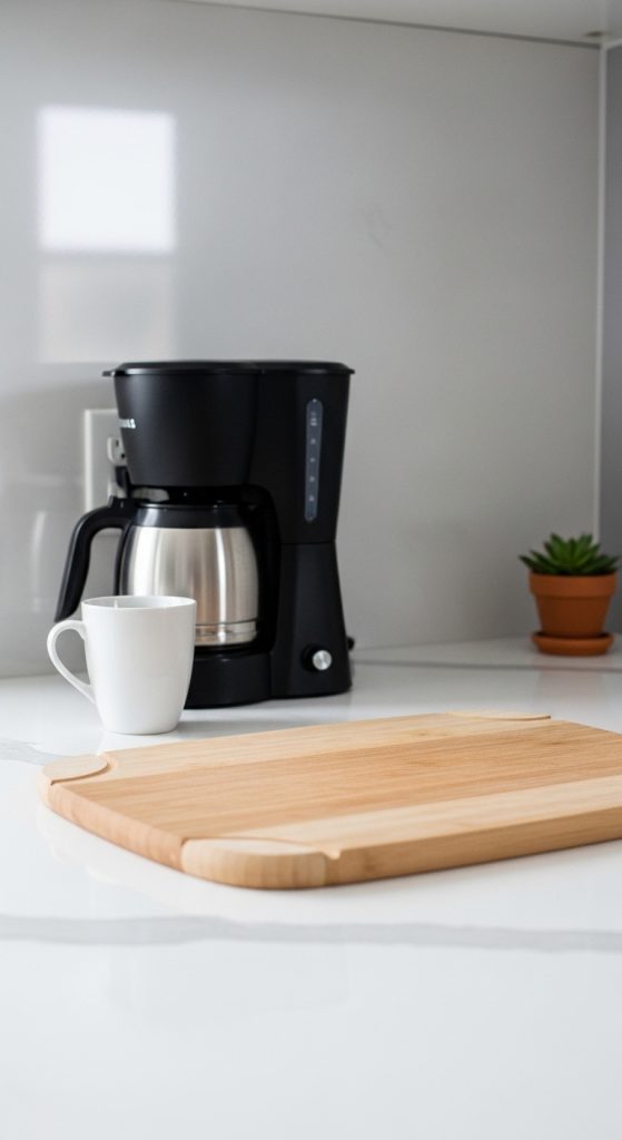 Keep countertops clear of unnecessary items. Only leave functional essentials like a coffee maker or cutting board visible. This not only enhances the minimalist vibe but also provides more space for meal preparation and creative cooking.