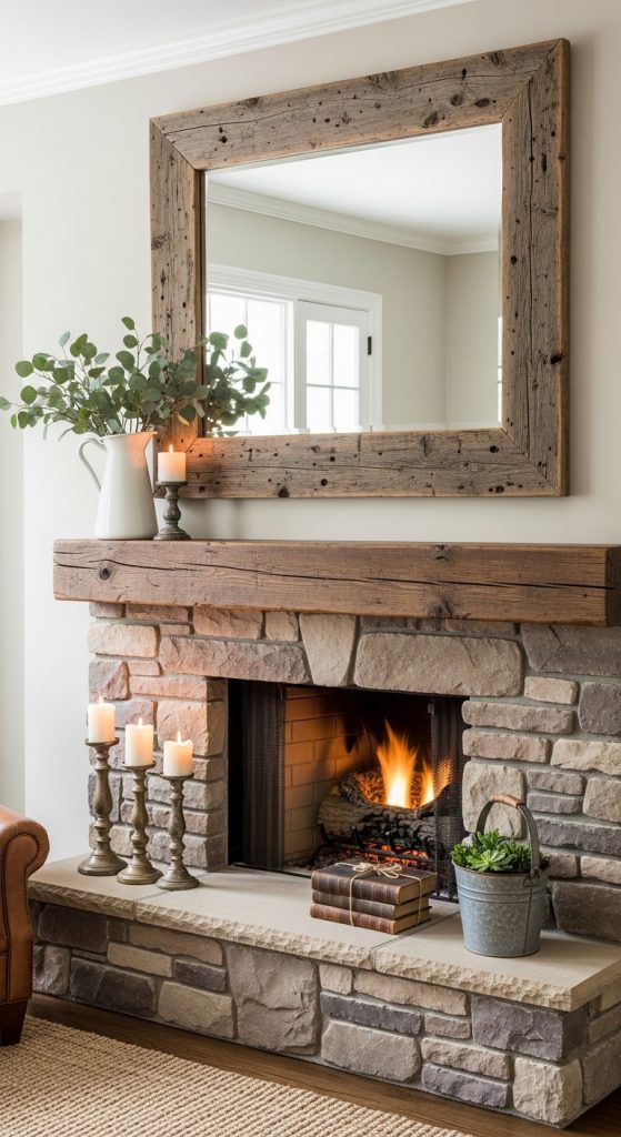 Adding a mirror above the fireplace is one of the easiest ways to upgrade your living room decor. From oversized statement mirrors to rustic wooden frames, the right mirror can brighten your space, create balance, and add timeless elegance. Choose a style that matches your interior theme and layer it with complementary decor for a beautifully styled mantel that feels both functional and visually stunning.
