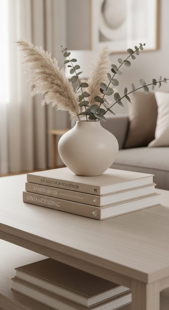 If you love a clean aesthetic, keep it simple. Use only 2–3 books and one decorative object.