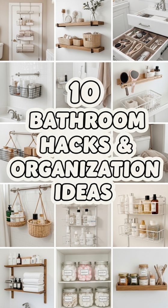 Organizing your bathroom doesn’t have to be overwhelming. By using over-the-door organizers, floating shelves, drawer dividers, magnetic strips, tension rods, and smart container solutions, you can transform even the smallest space into a functional and stylish retreat. These 10 bathroom hacks and organization ideas provide practical strategies to keep your bathroom tidy, efficient, and visually appealing, making everyday routines smoother and more enjoyable.
