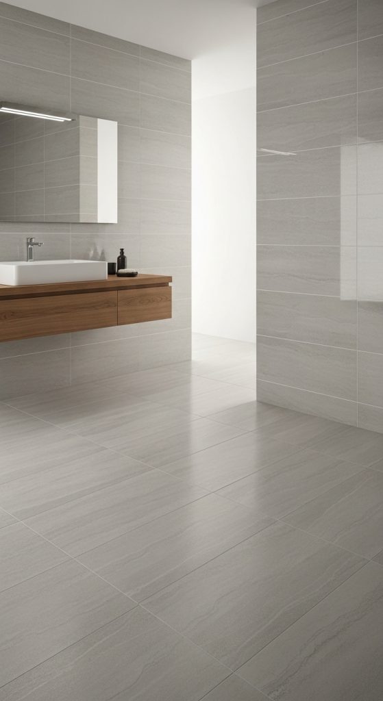 Using large-format tiles minimizes grout lines, creating a clean, seamless look. Perfect for both floors and walls, they make small bathrooms appear larger and more open.